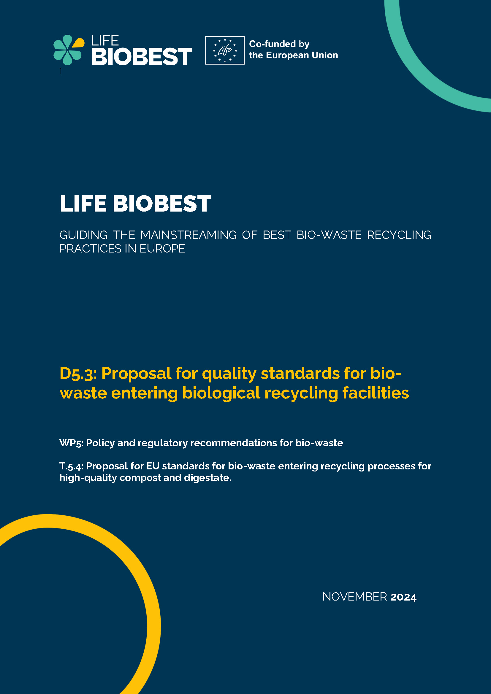 This document proposes unified quality standards for bio-waste entering biological recycling facilities in the EU, in alignment with the Waste Framework Directive. The quality of bio-waste directly affects the production of compost and digestate, serving as both a driver for high-quality outputs and, if requirements are overly strict, a barrier to implementation. The document reviews current national approaches across EU Member States, including methodologies for compositional analysis and defined impurity limits, and draws on expert consultations to shape practical recommendations.